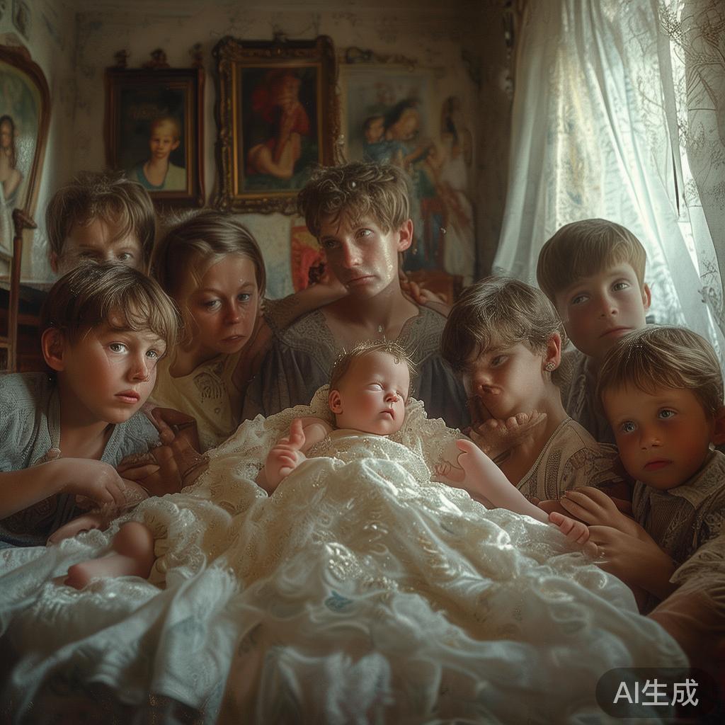 从前有一个家庭,父母生了八个孩子,其中七个儿子和最小的女儿。这个小女孩虽然长得很漂亮,但她太瘦弱了,家人担心她活不下来,于是决定给她施洗礼。