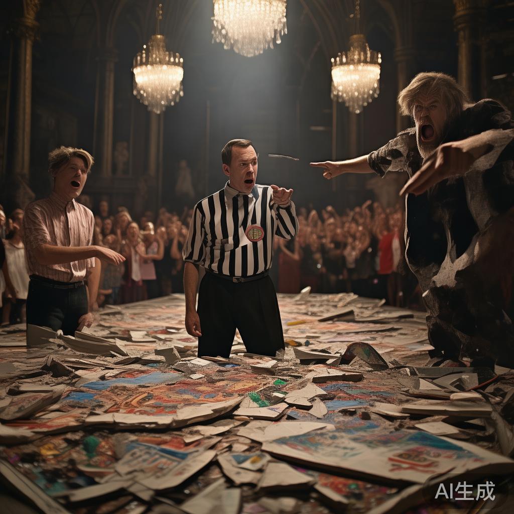 没想到,一个壮汉突然插入,叫嚣着:“该轮到我了!我才能做出最让人琢磨不透的东西!”说罢,他用斧头挥向那件精美的艺术品,顷刻间,齿轮和弹簧飞洒四处,所有的一切瞬间被毁灭。
