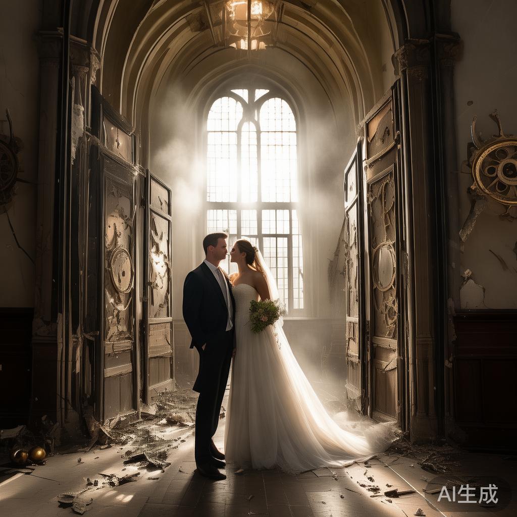然而,当歌声戛然而止,静寂降临,教堂的大门忽然打开,嘭!各种钟表部件在走廊上转动,停驻于新郎与新娘之间。虽说死人不能复生,但这件艺术品却以一种意想不到的方式重新焕发生机。尽管受到重创,其精神始终坚韧如初。